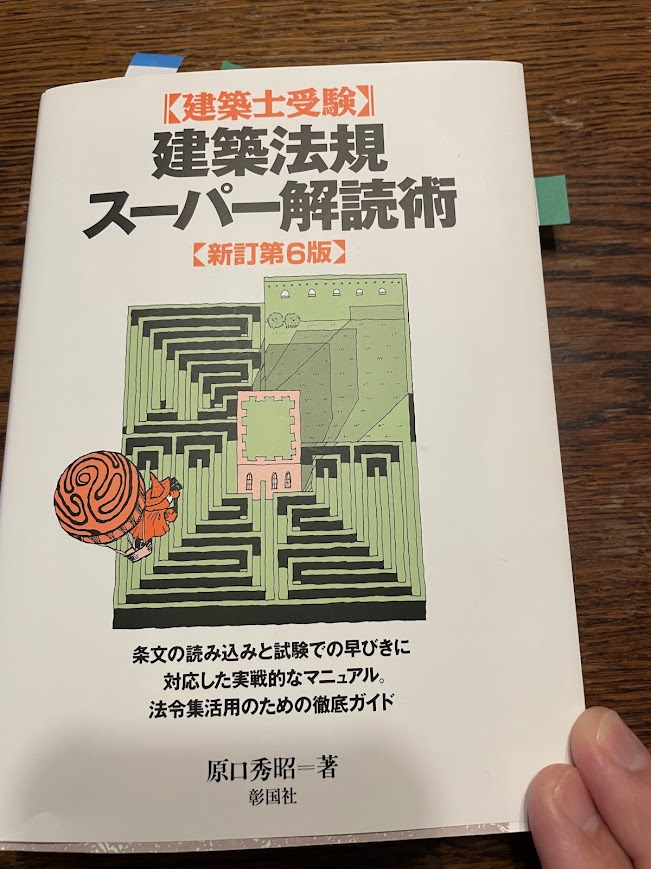 学科試験は4科目あるのですが、そのなかでも最も出題範囲が広い建築法規の対策を開始しました。建築法規は、建築基準法に関して出題され、1600ページある関係法令集のどこかからが出題されます。その関係法令集は試験時に持ち込みができるのですが、問題用紙に記載されている法規が法令集のどこに記載されているかを知っておく必要があります。そこで対策としては、過去出題された問題を法令集にラベリングしながら、どこにどのような法令が記載されているかを頭に叩き込むことです。いろいろ調べると上の画像の書籍に記載されているラベリングの方法が理解しやすいとネットにあったので、三月に入ってからラベリングを開始し、受検申込み前にはラベリングが完了できそうです。